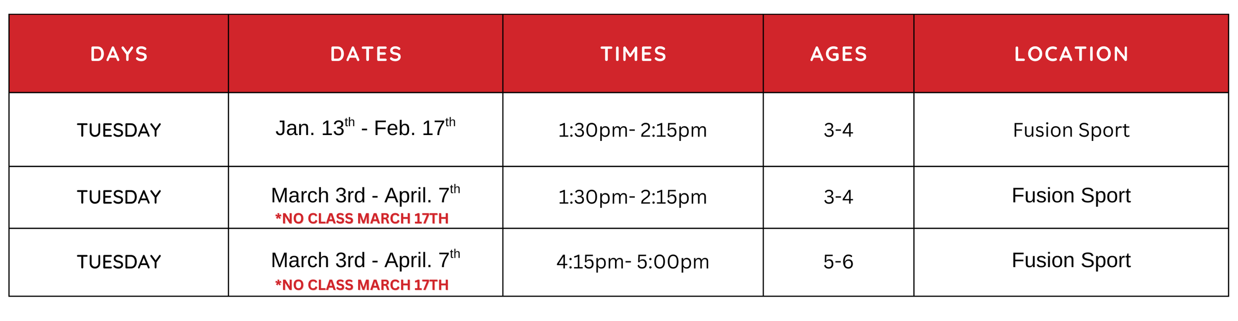 Our classes are age-appropriate and designed to develop gross motor skills, promote physical fitness, and create self-confidence in a non-competitive environment.